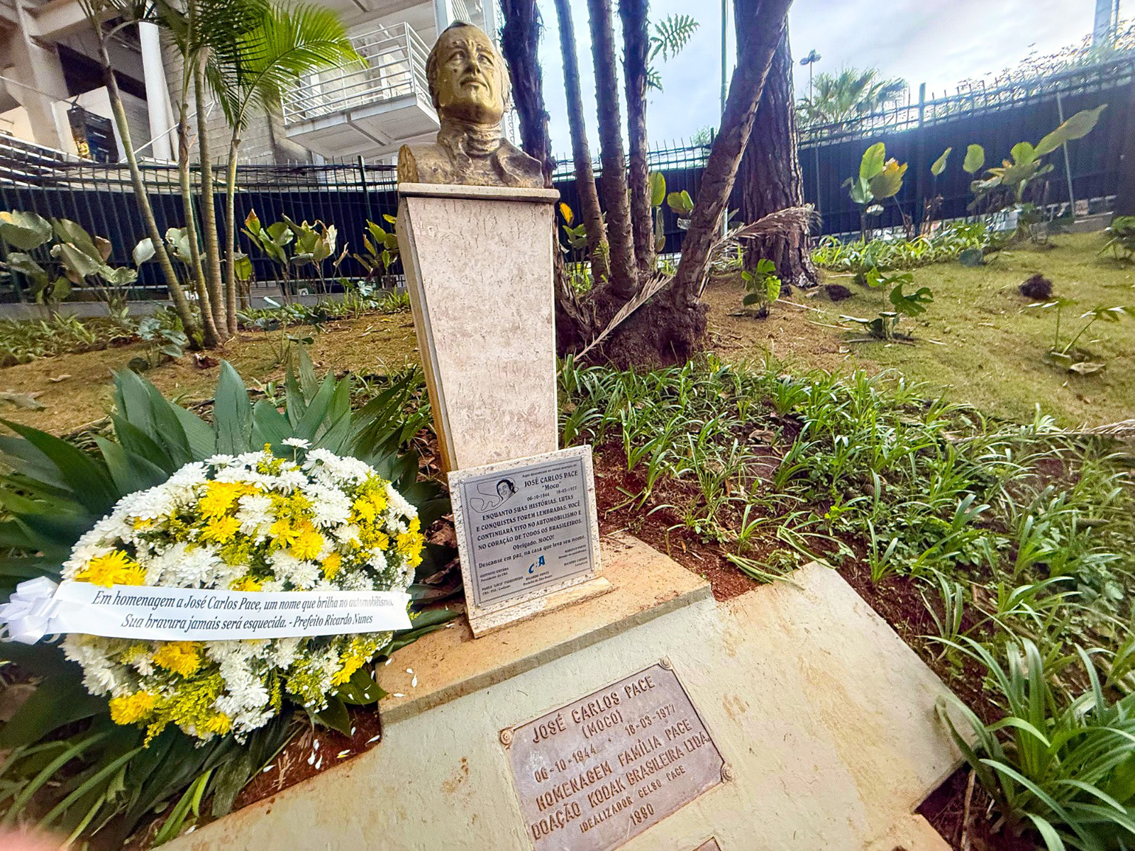 Estátua de José Carlos Pace passou a abrigar, em 2024, restos mortais do piloto que dá nome ao Autódromo de Interlagos