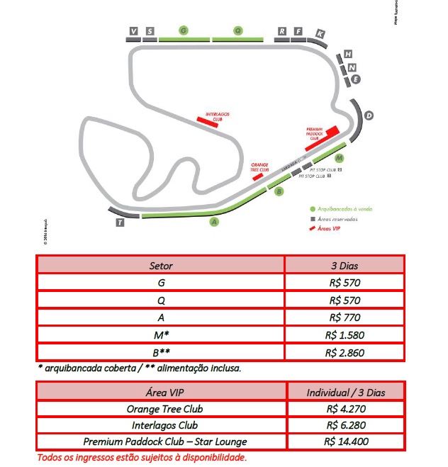 Veja abaixo mapa de setores e preços oficiais para o GP Brasil de F1 – 2016: