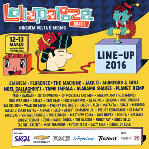 O Lollapalooza acontecerá pela terceira vez no Autódromo de Interlagos em março de 2016, são 600 metros quadrados para trazer todos os amigos e curtir dois dias de shows. Com ingressos disputados pelos amantes da música, o festival já têm line up completa para os dois dias. A última edição do evento levou 136 mil pessoas para assistirem a 50 atrações, distribuídas pelos cinco palcos, espalhados pelo Autódromo.