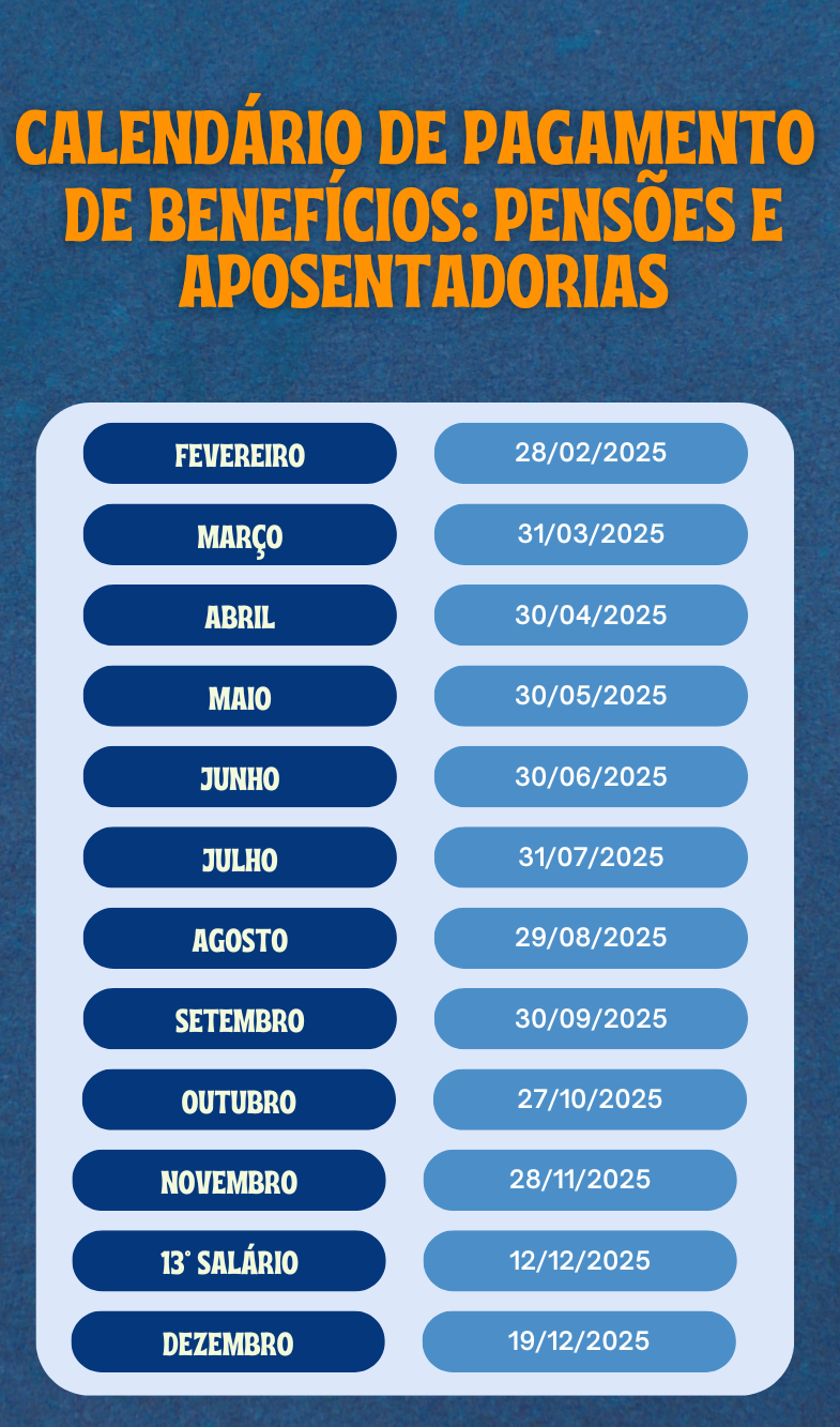 Confira aqui as datas de pagamento dos benefícios de pensão e aposentadoria para o ano de 2025.