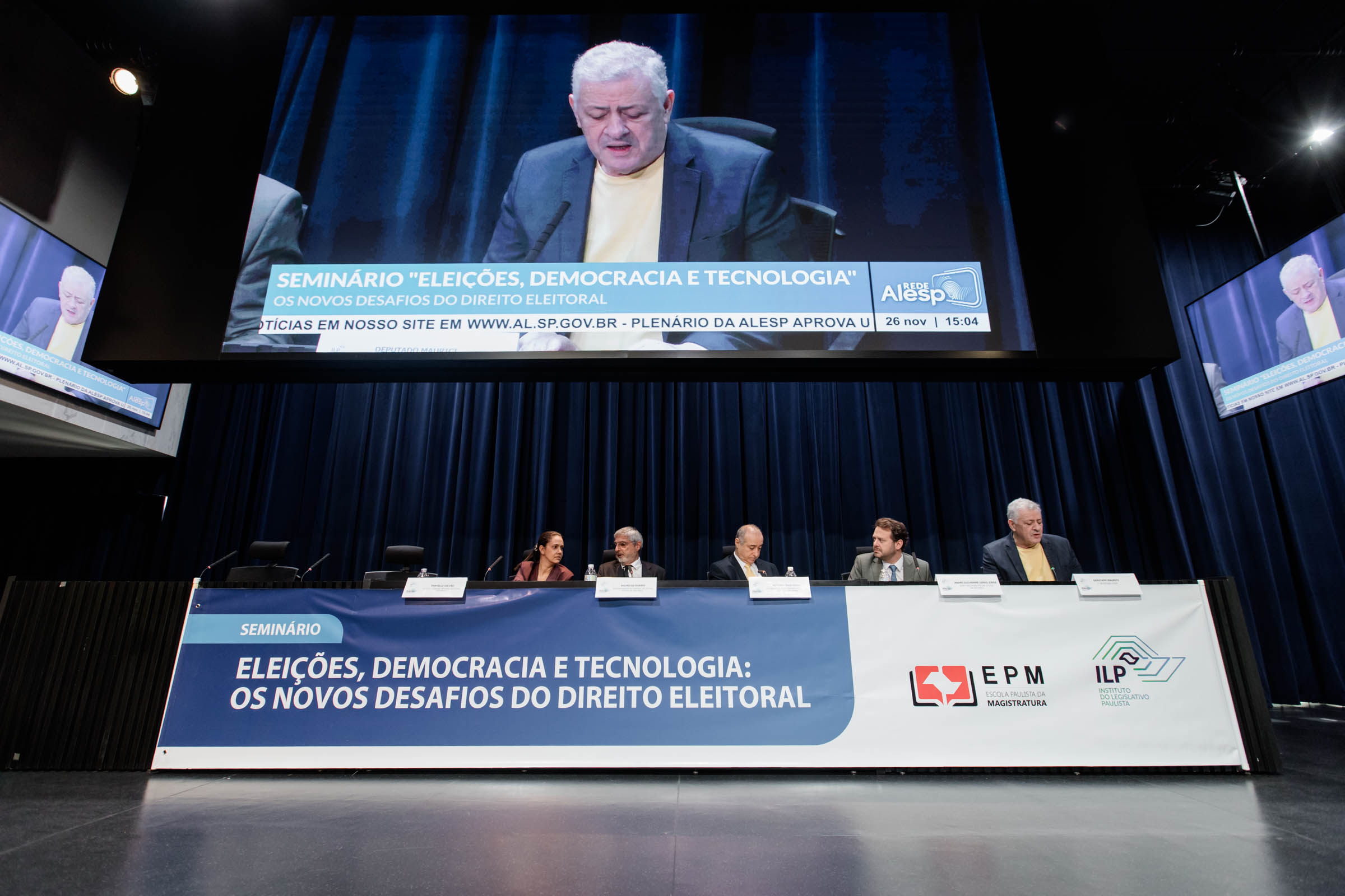 Promovido pelo Instituto Legislativo Paulista (ILP) em parceria com a Escola Paulista da Magistratura (EPM), o seminário discutiu temas centrais do Direito Eleitoral brasileiro, como a relação entre sistema eleitoral e representação democrática, o papel da Justiça Eleitoral na garantia e fiscalização do processo democrático, os desafios trazidos pela era da hiperconectividade e a proteção da probidade eleitoral diante de crimes e ilícitos.