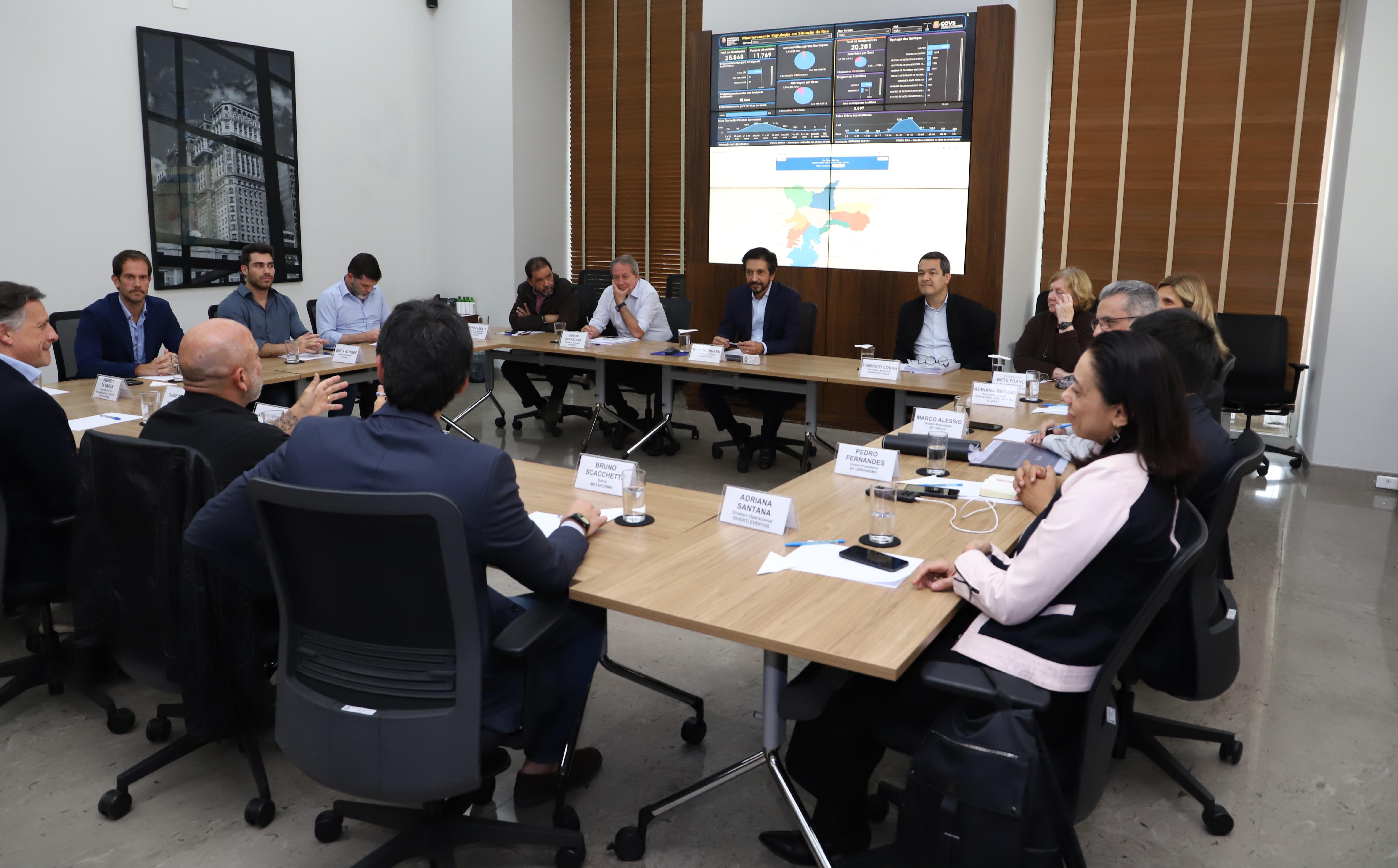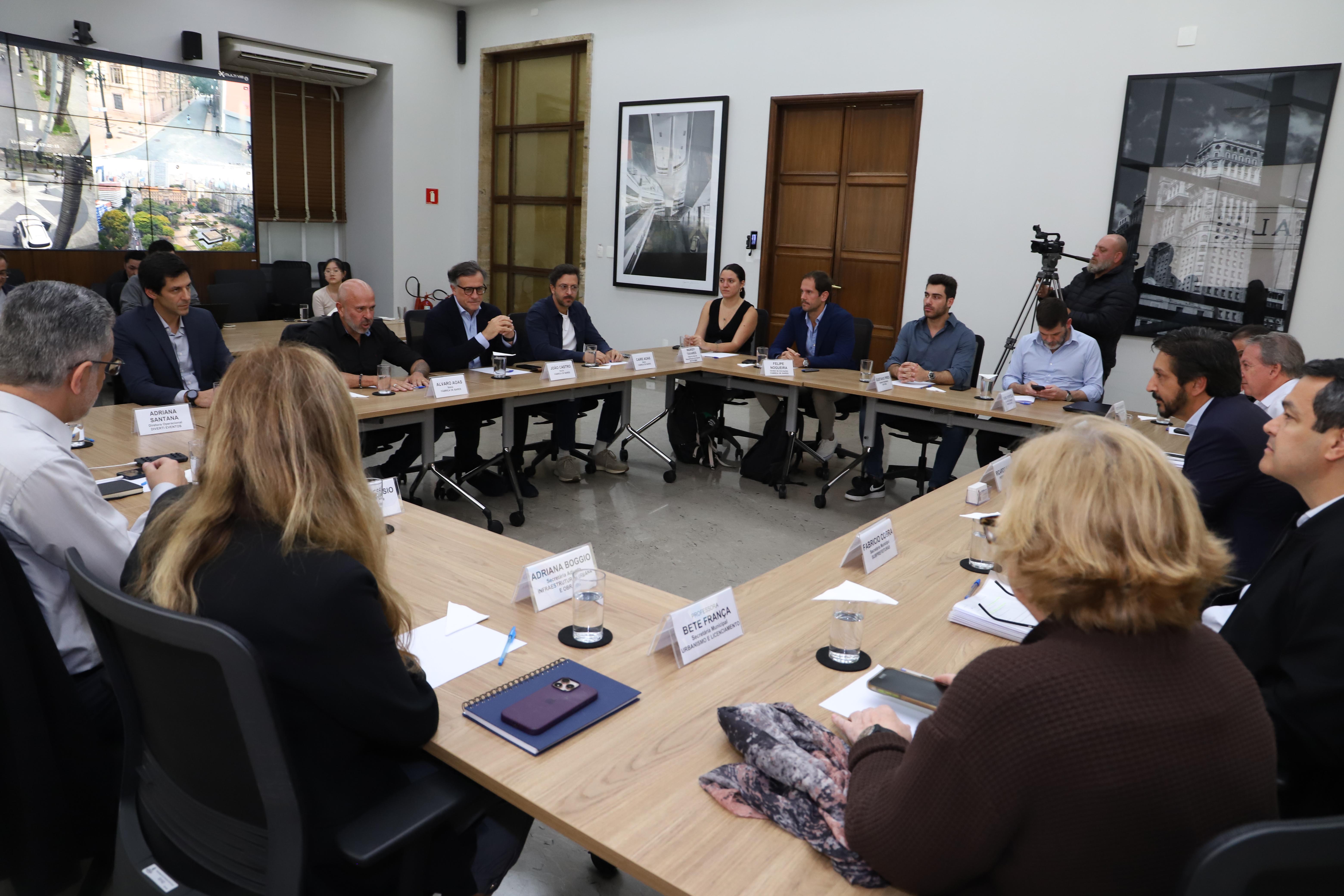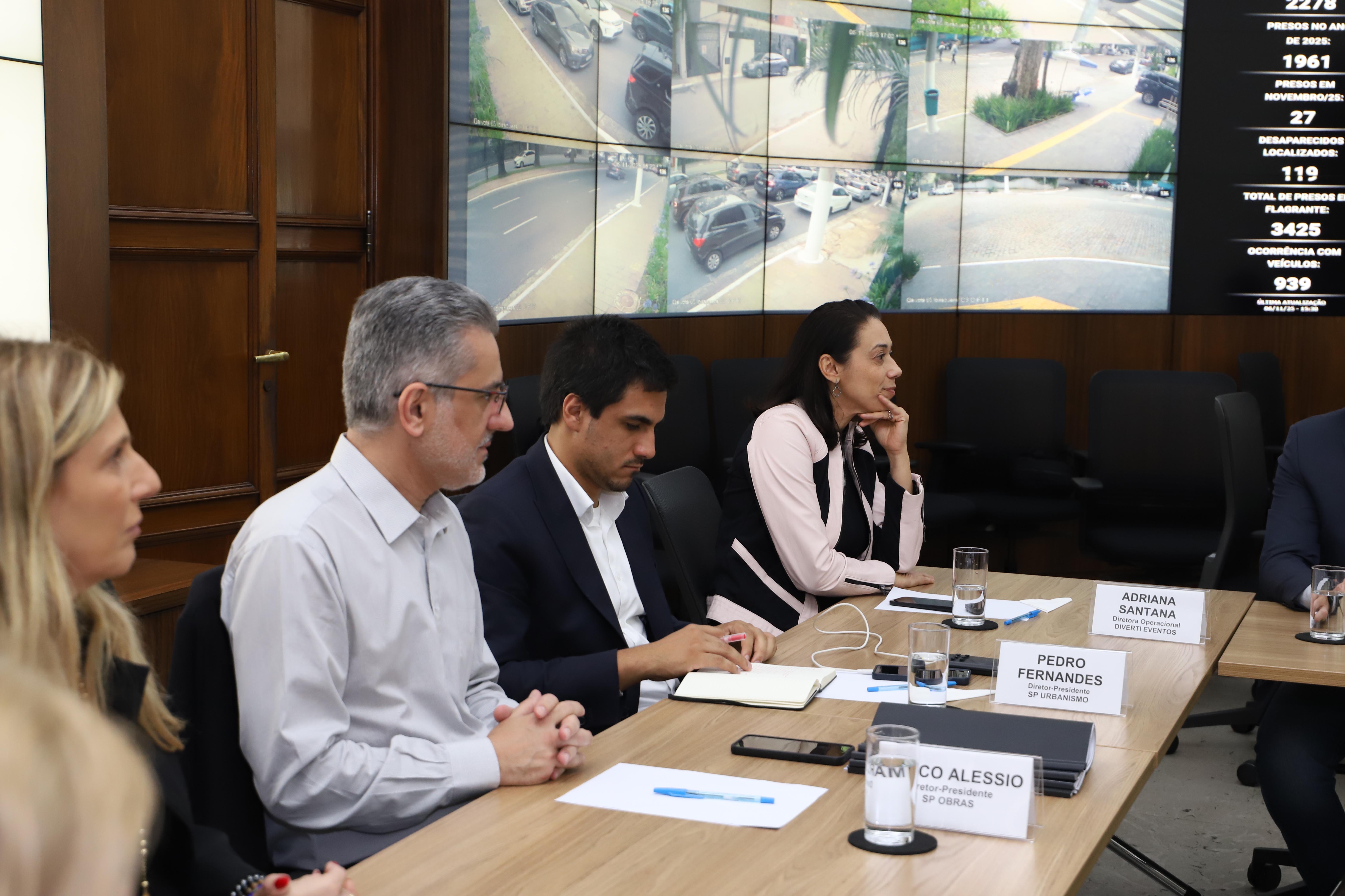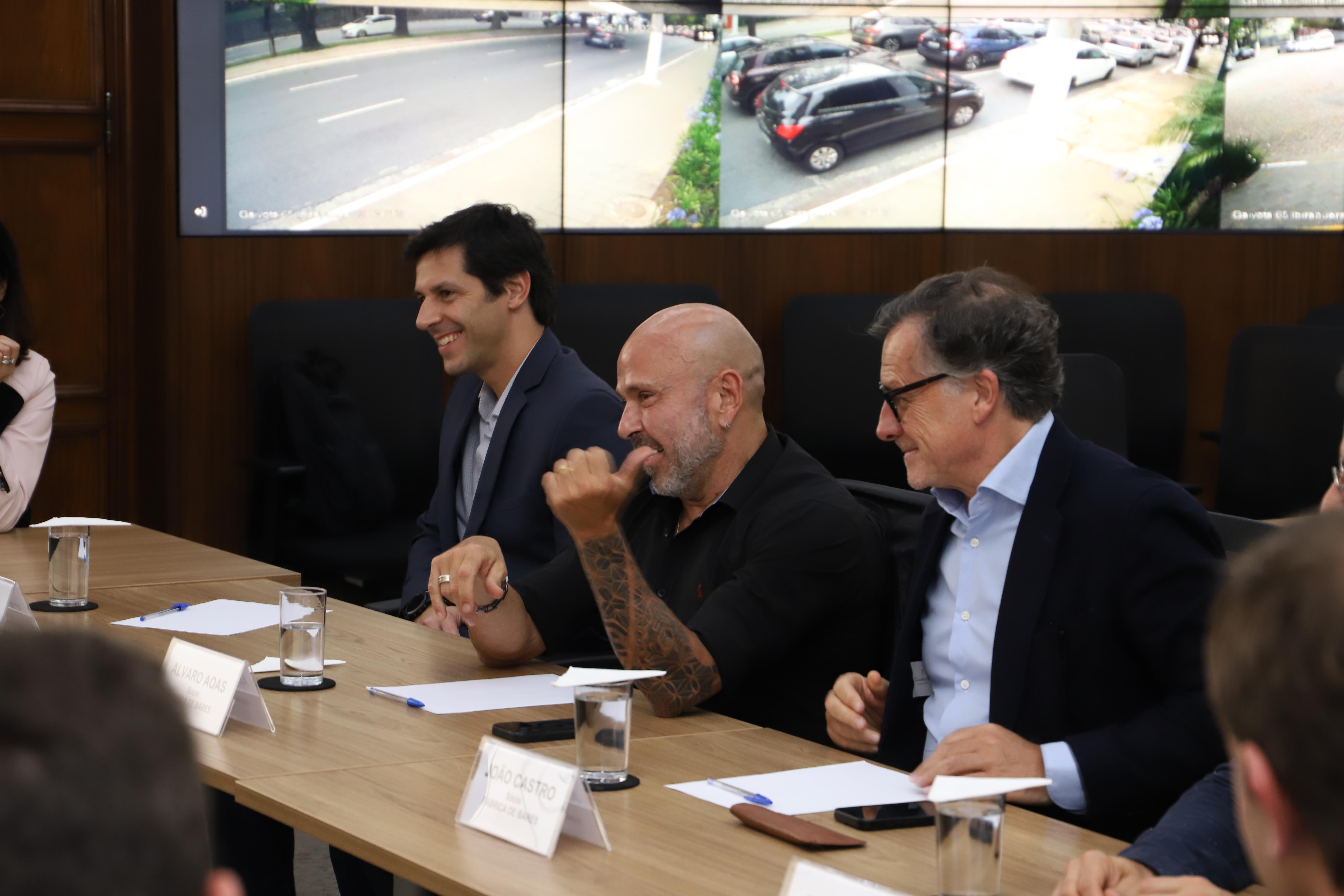 O prefeito Ricardo Nunes recebeu os sócios da Fábrica de Bares em seu gabinete. Os secretários Edson Aparecido (Governo), Fabrício Cobra (Subprefeituras), Bete França (Urbanismo e Licenciamento), Fábio Portela (Comunicação) e Totó Parente (Cultura e Economia Criativa) estiveram presentes. O encontro contou, ainda, com as participações dos diretores-presidentes Marco Aléssio Antunes (SP Obras), Gustavo Pires (SPTuris) e Pedro Fernandes (SP Urbanismo).