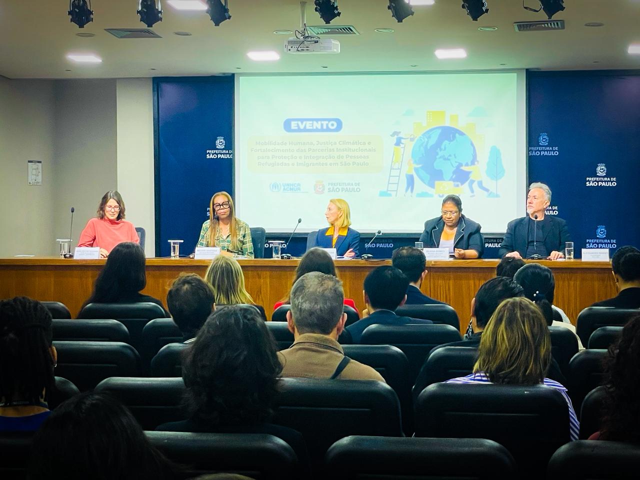 A Prefeitura de São Paulo, em parceria com o Alto Comissariado das Nações Unidas para Refugiados (ACNUR), realizou nesta segunda-feira, dia 22, o evento “Mobilidade Humana, Justiça Climática e Fortalecimento das Parcerias Institucionais para Proteção e Integração de Pessoas Refugiadas e Imigrantes em São Paulo”. As discussões aconteceram no auditório da Prefeitura Municipal de São Paulo (Viaduto do Chá, 15) e teve como objetivo promover o diálogo sobre os desafios e as respostas urbanas aos deslocamentos causados pela crise climática entre poder público, organismos internacionais, sociedade civil e comunidades afetadas.