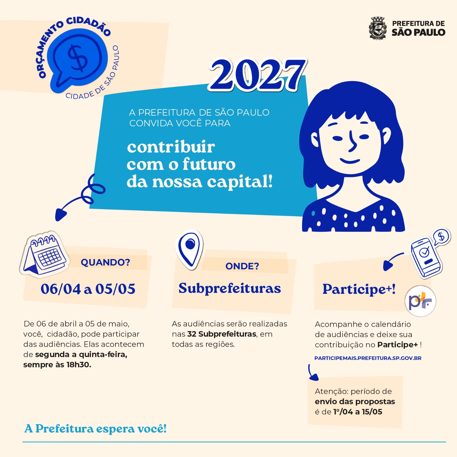 Saiba mais sobre as audiências públicas em https://participemais.prefeitura.sp.gov.br/