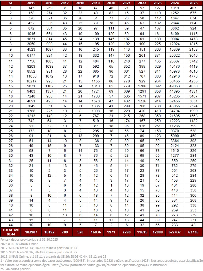 - Semana Epidemiológica 43 - 03 de novembro de 2025