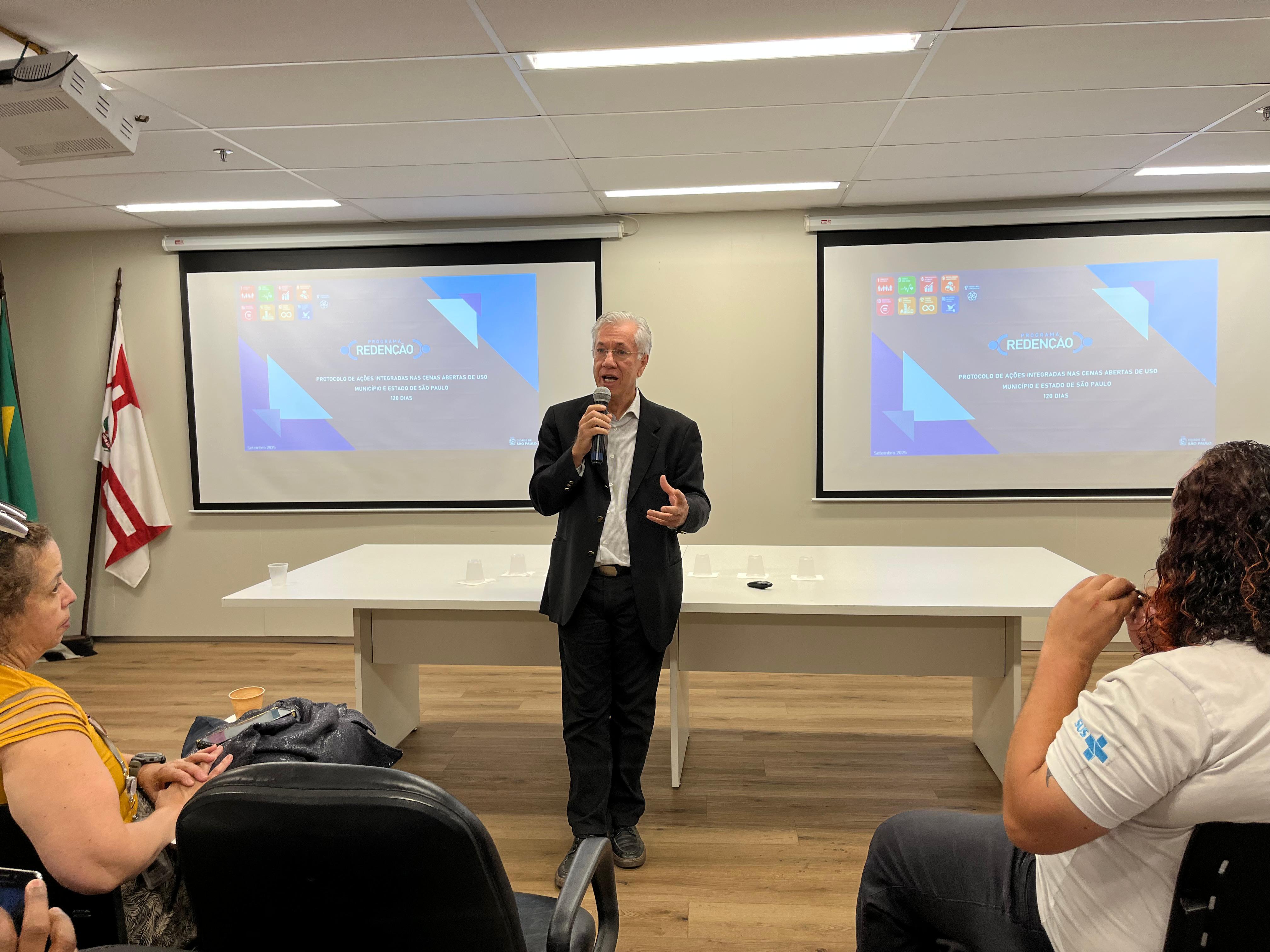 A abertura do evento contou com a participação do Secretário Executivo de Projetos Estratégicos, Edsom Ortega, e de Márcia Cerqueira, que representou o Secretário Municipal da Saúde, Luiz Carlos Zamarco, e a Secretária Executiva de Atenção Básica, Especialidades e Vigilância em Saúde, Sandra Sabino. “A atuação dos agentes da Saúde e Assistência Social com as pessoas que fazem o uso de álcool e outras drogas e que estão em situação de vulnerabilidade ou risco social tem sido fundamental para aumentar as possibilidades de encaminhamentos das pessoas que ainda estão nas ruas.”, destacou Ortega.